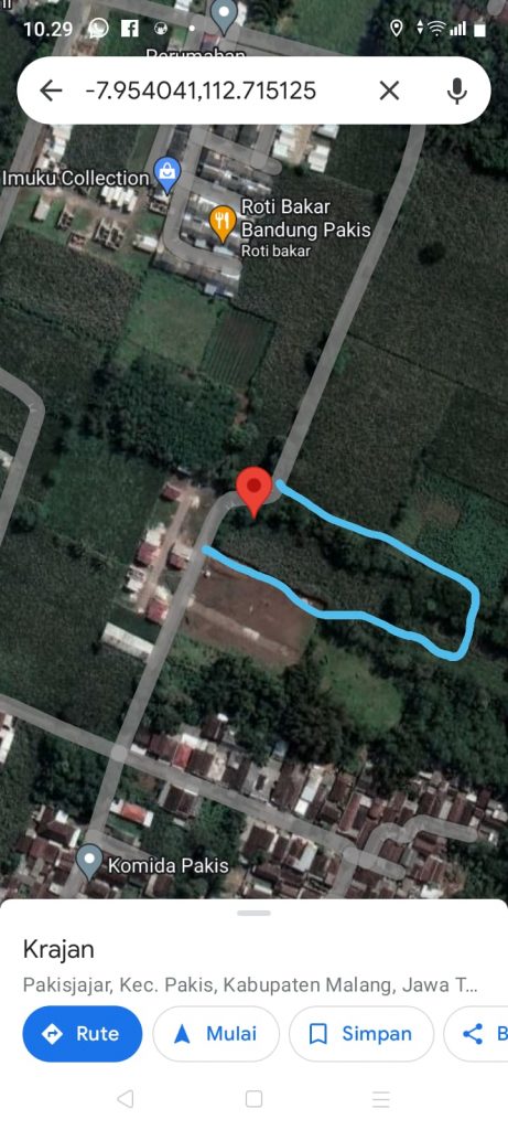 Lahan pojok lokasi istana bordir pakis kabupaten Malang Rp 6,750 M Luas ± 9000 m Surat SHM dan AJB