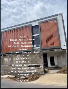 SALE Rumah Kos 2 lantai Full anak kos Di Candi Pandanwangi Malang ( dekat kampus” besar) LT 220 m2 LB 400 m2 K Tidur 20 K mandi dalam 20 (setiap kamar ada AC & Water heater) Basement SHM 3,65 M MMC RUMAH SATU DUA WWW.RUMAH12.COM TIM BERBURU RUMAH IMPIAN INFO MMC MARKETING OFFICE ANDIKA 087887232777 081235534599 IG@JUALRUMAHDIMALANG TIKTOK@JUALRUMAHGAMPANG