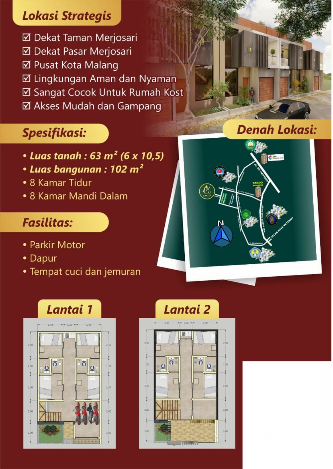 Investasi Rumah Kos Ekslusif 2 Lantai